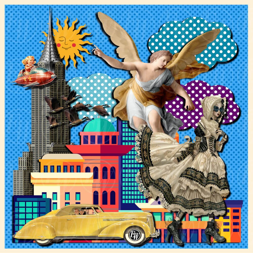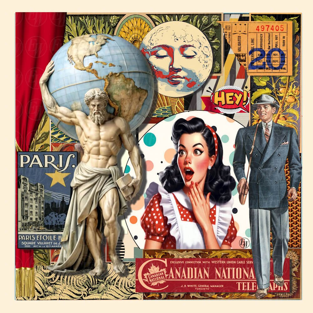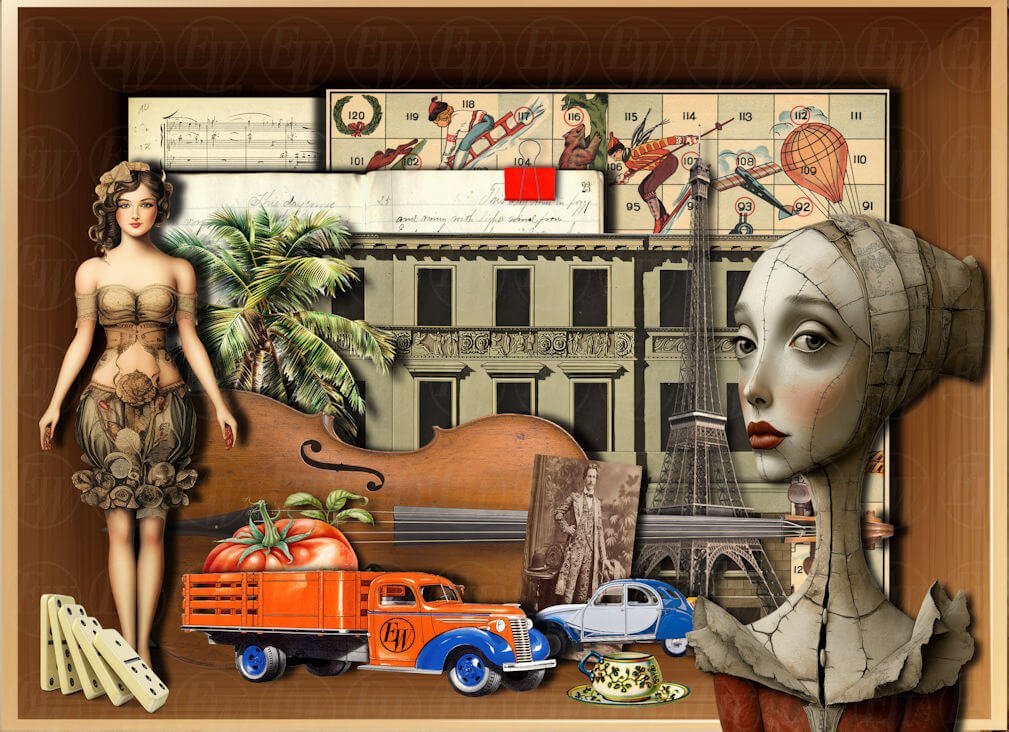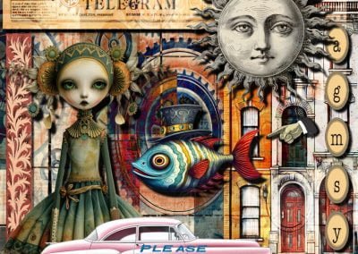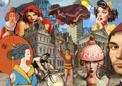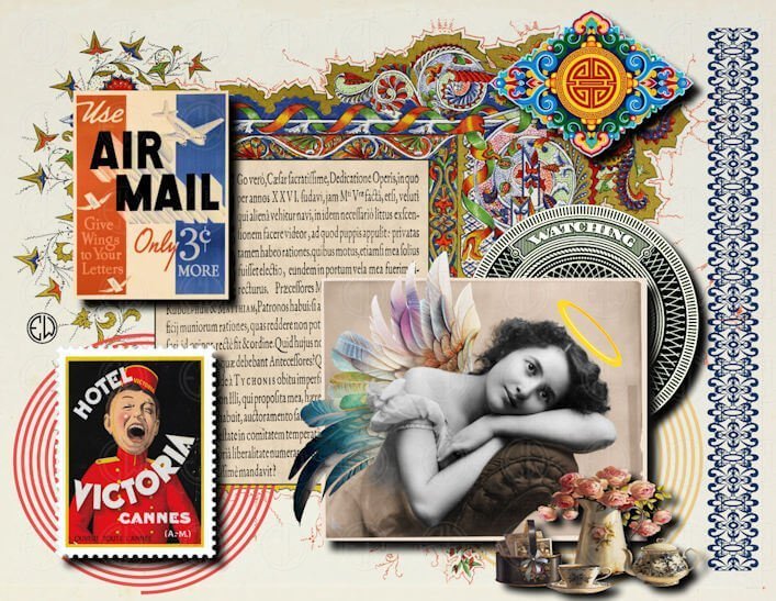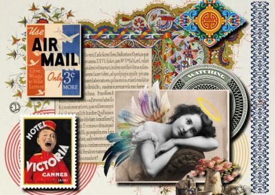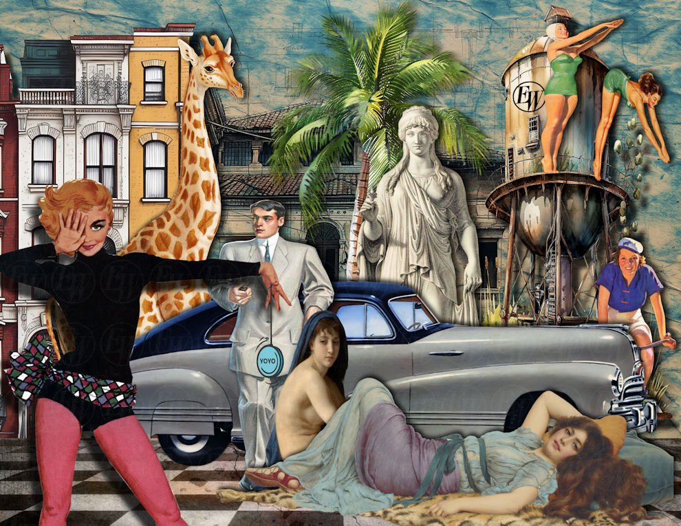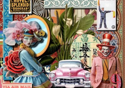 I have been creating collages for over 25 years. Initially handcrafted with paper, scissors and glue. Eventually I migrated to assembling my collages digitally and haven’t looked back.
