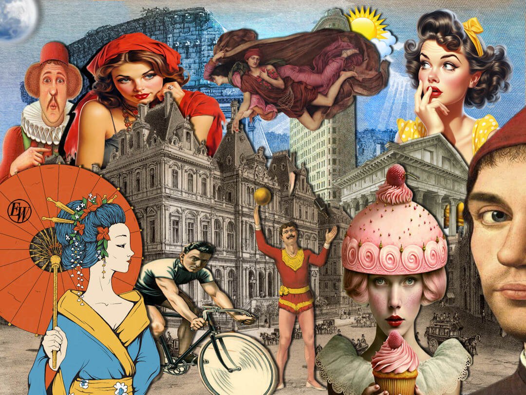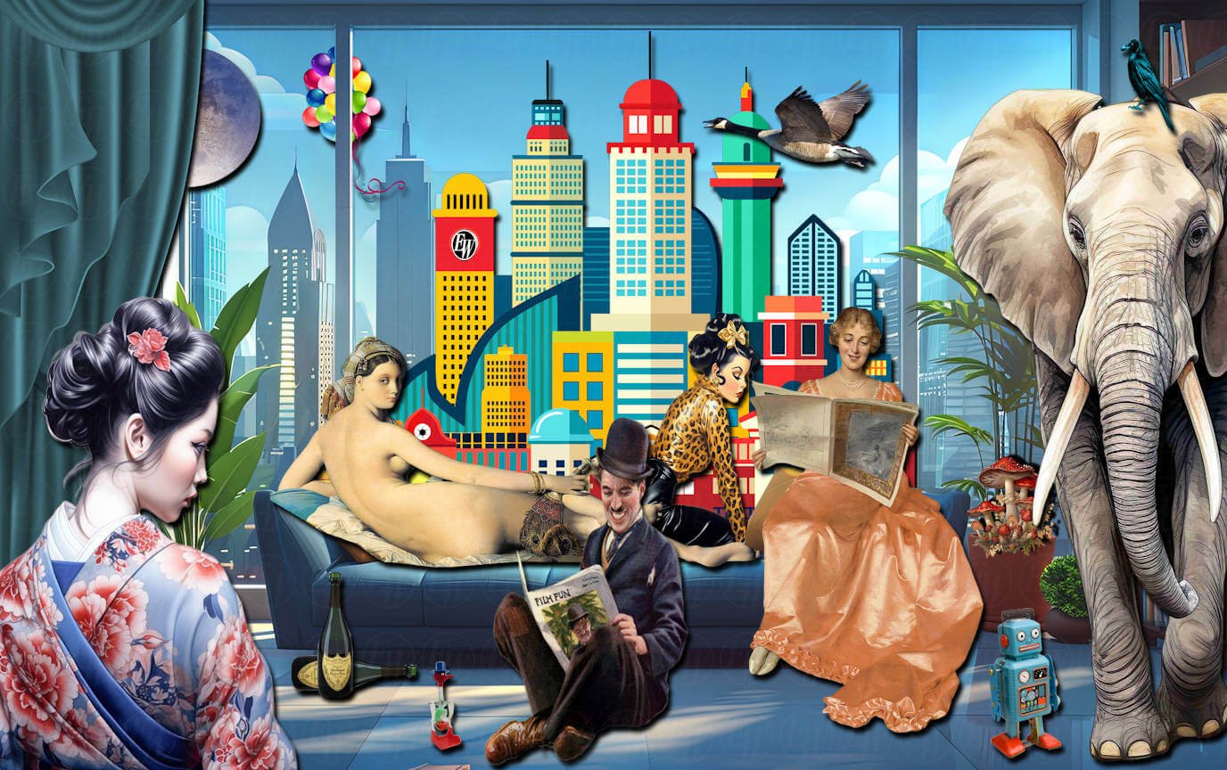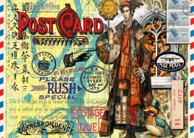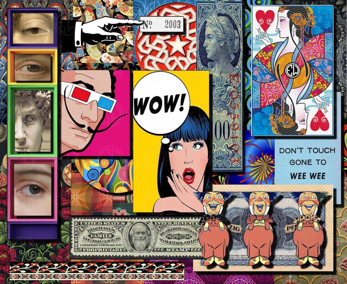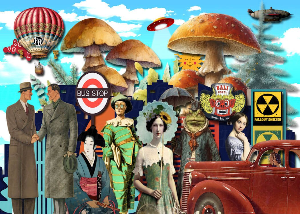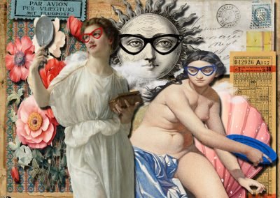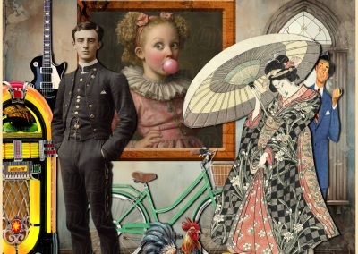 I have been creating collages for over 25 years. Initially handcrafted with paper, scissors and glue. Eventually I migrated to assembling my collages digitally and haven’t looked back.