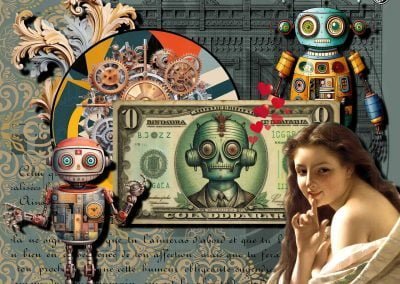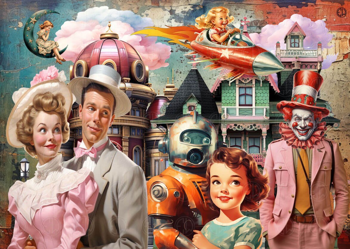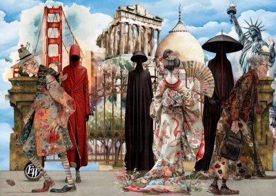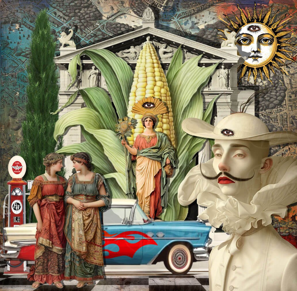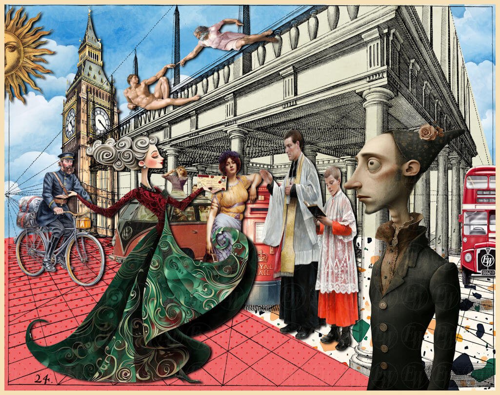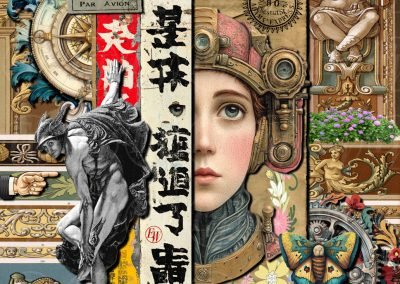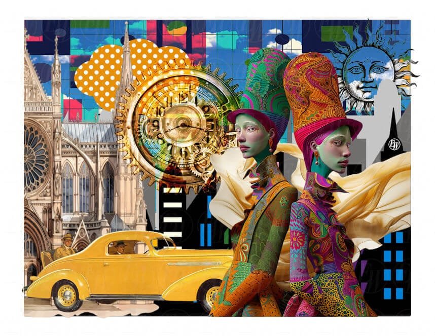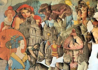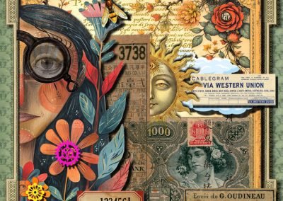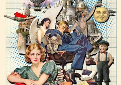 I have been creating collages for over 25 years. Initially handcrafted with paper, scissors and glue. Eventually I migrated to assembling my collages digitally and haven’t looked back.